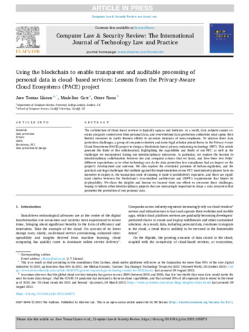 Title: | Using the blockchain to enable transparent and auditable processing of personal data in cloud- based services: Lessons from the Privacy-Aware Cloud Ecosystems (PACE) project |