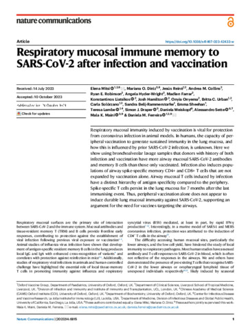 Respiratory mucosal immune memory to SARS-CoV-2 after infection and vaccination.
