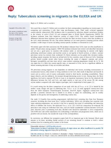 Title: | Reply: Tuberculosis screening in migrants to the EU/EEA and UK |