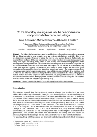 Title: | On the laboratory investigations into the one-dimensional compression behaviour of iron tailings |