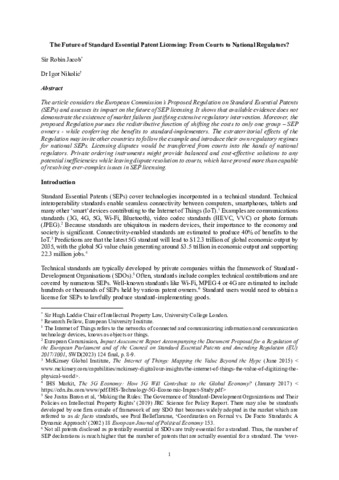 Title: | The future of standard essential patent licensing: from courts to national regulators? |