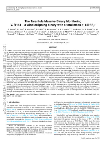 Title: | The Tarantula Massive Binary Monitoring V. R 144: a wind-eclipsing binary with a total mass ≳140 M⊙ |