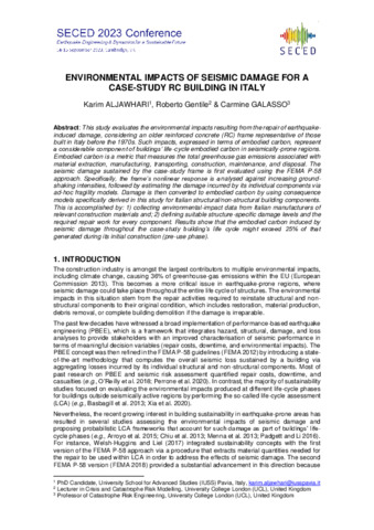 | Title: | Environmental impacts of seismic damage for a case-study reinforced RC building in Italy |