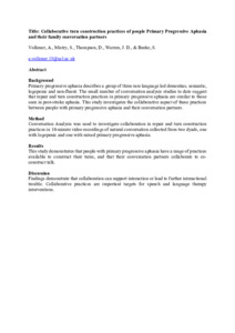 Collaborative turn-construction practices of people with primary progressive aphasia and their family conversation partners.