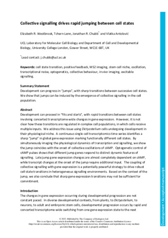 Title: | Collective signalling drives rapid jumping between cell states |