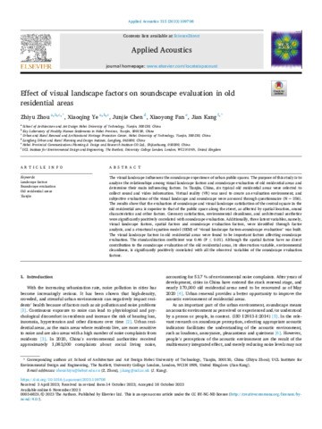 Title: | Effect of visual landscape factors on soundscape evaluation in old residential areas |