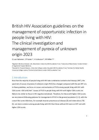 Title: | British HIV Association guidelines on the management of opportunistic infection in people living with HIV: The clinical investigation and management of pyrexia of unknown origin 2023 |