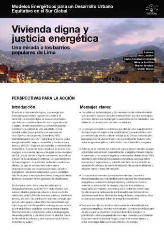 Title: | Vivienda digna y justicia energética: Una mirada a los barrios populares de Lima |