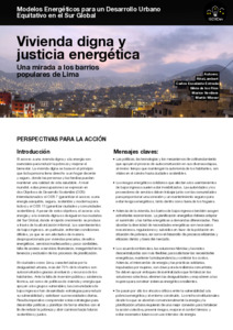 El acceso a una vivienda digna y a la energía son esenciales para reducir la pobreza y mejorar el bienestar. La vivienda digna se basa en el principio que toda persona tiene derecho a un hogar decente y seguro, donde las personas y las familias puedan mantener una calidad de vida saludable. A nivel mundial, estas preocupaciones se expresan en dos Objetivos de Desarrollo Sostenible (ODS) interrelacionados: el ODS 7 (garantizar el acceso a una energía asequible, segura, sostenible y moderna para todos) y el ODS 11 (garantizar ciudades y comunidades sostenibles). A pesar de estos objetivos, el acceso a la energía y a la vivienda digna es desigual en las ciudades del Sur Global, donde el rápido crecimiento se produce a través de la urbanización informal. Los asentamientos de bajos ingresos, en particular, enfrentan condiciones difíciles, ya que se ven afectados de manera desproporcionada por viviendas precarias, desafíos energéticos, servicios inadecuados y poco confiables, falta de acceso a servicios financieros, inseguridad en la tenencia y exclusión de los procesos de planificación. En ciudades como Lima, caracterizadas por la desigualdad urbana, más del 70% de los barrios son autoconstruidos gracias al esfuerzo y recursos de los habitantes. Ante la falta de inversión pública y asistencia técnica, así como de políticas de vivienda y energía que apoyen a los grupos vulnerables, las comunidades de bajos ingresos han desarrollado estrategias para reducir su vulnerabilidad y satisfacer sus necesidades diarias. Resulta imperativo comprender estas estrategias para desarrollar políticas y planificar de forma efectiva con el fin de reducir la pobreza y abrir caminos hacia futuros sostenibles y justos.