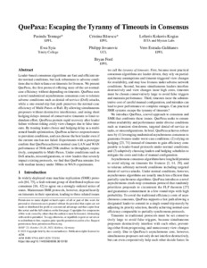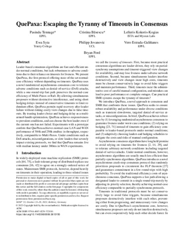 Title: | QuePaxa: Escaping the tyranny of timeouts in consensus |