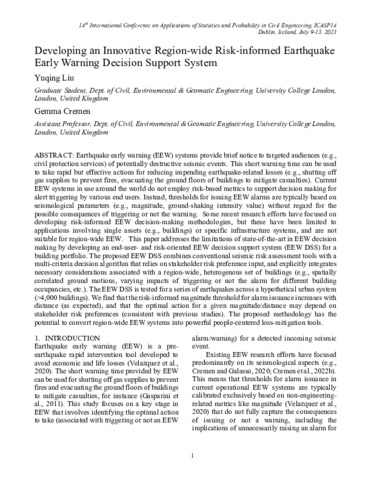 Developing an Innovative Region-wide Risk-informed Earthquake Early Warning Decision Support System.