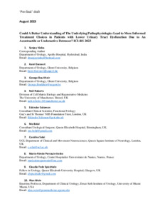 | Title: | Could a better understanding of the underlying pathophysiologies lead to more informed treatment choices in patients with lower urinary tract dysfunction due to an acontractile or underactive detrusor? ICI-RS 2023 |