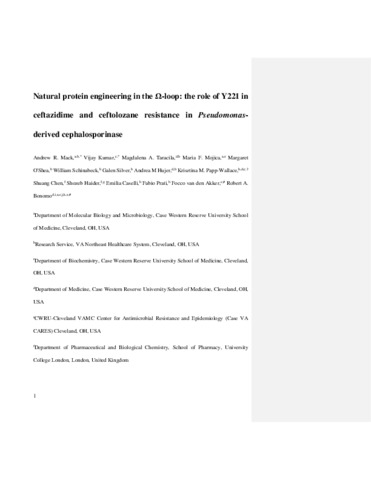Title: | Natural protein engineering in the Ω-loop: the role of Y221 in ceftazidime and ceftolozane resistance in Pseudomonas-derived cephalosporinase |
