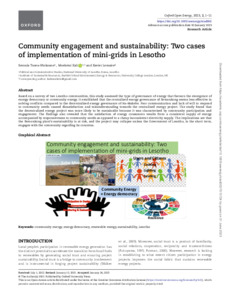 Title: | Community engagement and sustainability: Two cases of implementation of mini-grids in Lesotho |