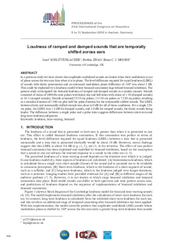 Loudness of ramped and damped sounds that are temporally shifted across ears.