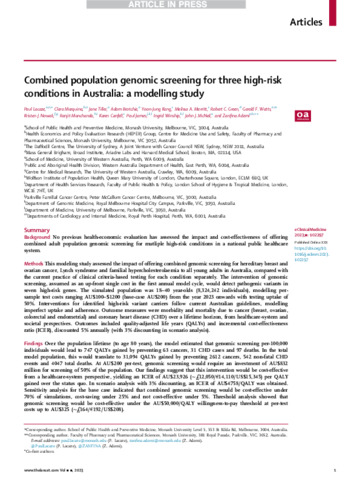 Title: | Combined population genomic screening for three high-risk conditions in Australia: a modelling study |