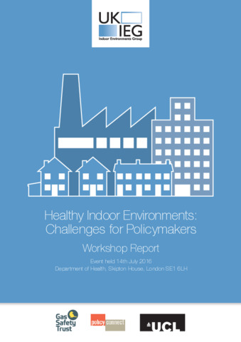 Recognising the cross-cutting nature of healthy indoor environments, and the significant challenge in achieving policy coordination, the UKIEG – with support from the Gas Safety Trust, Policy Connect and Professor the Baroness Finlay of Llandaff – organised a one-day workshop, held in London on 14th July 2016. The meeting brought together 15 attendees from different government departments, agencies, All-Party Parliamentary Groups and sponsor organisations. The discussion addressed: a) issues and priorities from the perspectives of different government departments and agencies; b) opportunities and challenges presented in addressing this issue; c) whether better coordination might be required and, if so, how this could be achieved