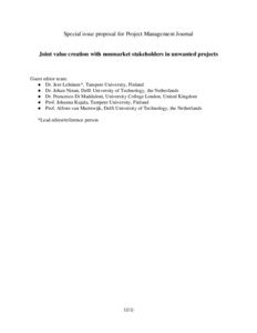 Title: | Call for Papers: Joint Value Creation With Nonmarket Stakeholders in Unwanted Projects |