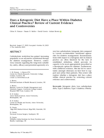 Title: | Does a Ketogenic Diet Have a Place Within Diabetes Clinical Practice? Review of Current Evidence and Controversies |