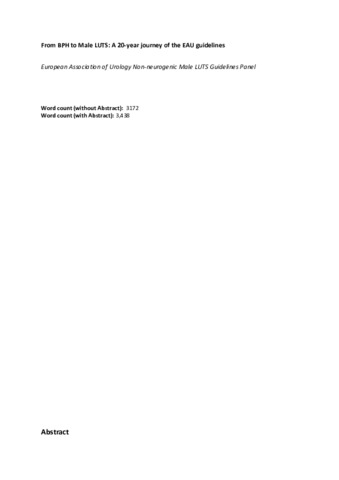 | Title: | From BPH to male LUTS: a 20-year journey of the EAU guidelines |