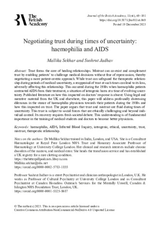 | Title: | Negotiating trust during times of uncertainty: Haemophilia and AIDS |