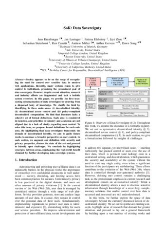 Society appears to be on the verge of recognizing the need for control over sensitive data in modern web applications. Recently, many systems claim to give control to individuals, promising the preeminent goal of data sovereignty. However, despite recent attention, research and industry efforts are fragmented and lack a holistic system overview. In this paper, we provide the first transecting systematization of data sovereignty by drawing from a dispersed body of knowledge. We clarify the field by identifying its three main areas: (i) decentralized identity, (ii) decentralized access control and (iii) policy-compliant decentralized computation. We find that literature lacks a cohesive set of formal definitions. Each area is considered in isolation, and priorities in industry and academia are not aligned due to a lack of clarity regarding user control. To solve this issue, we propose formal definitions for each sub-area. By highlighting that data sovereignty transcends the domain of decentralized identity, we aim to guide future works to embrace a broader perspective on user control. In each section, we augment our definition with security and privacy properties, discuss the state of the art and proceed to identify open challenges. We conclude by highlighting synergies between areas, emphasizing the real-world benefit obtained by further developing data sovereign systems.