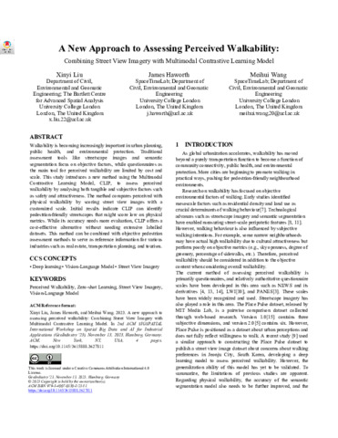| Keywords: | Perceived Walkability, Zero-shot Learning, Street View Imagery, Vision-Language Model |