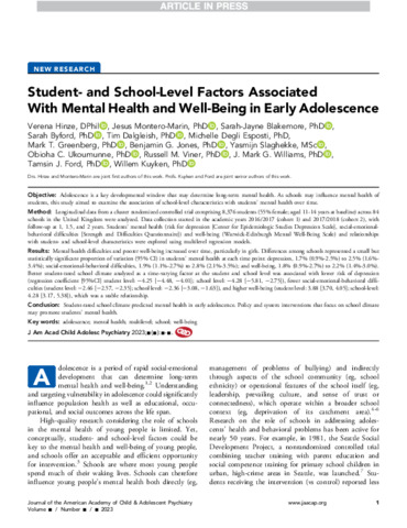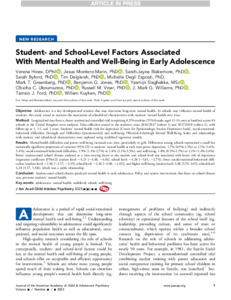 Title: | Student- and School-Level Factors Associated With Mental Health and Well-Being in Early Adolescence |