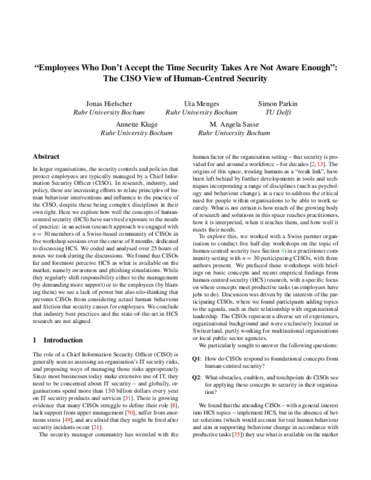 Title: | Employees Who Don't Accept the Time Security Takes Are Not Aware Enough": The CISO View of Human-Centred Security |