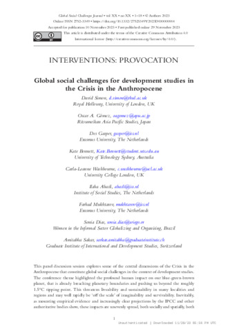 | Title: | Global social challenges for development studies in the Crisis in the Anthropocene |