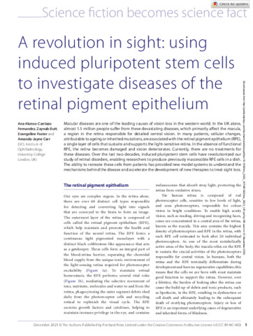 Title: | A revolution in sight: using induced pluripotent stem cells to investigate diseases of the retinal pigment epithelium |