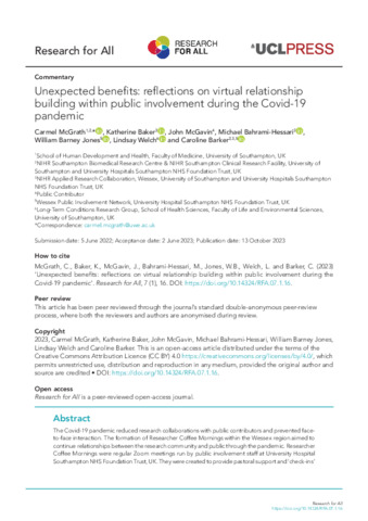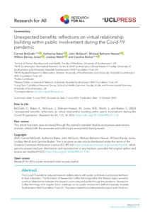 Title: | Unexpected benefits: reflections on virtual relationship building within public involvement during the Covid-19 pandemic |