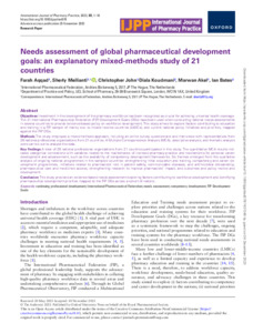 Title: | Needs assessment of global pharmaceutical development goals: an explanatory mixed-methods study of 21 countries |