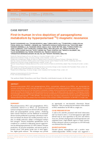 First-in-human in-vivo depiction of paraganglioma metabolism by hyperpolarised 13C-magnetic resonance.