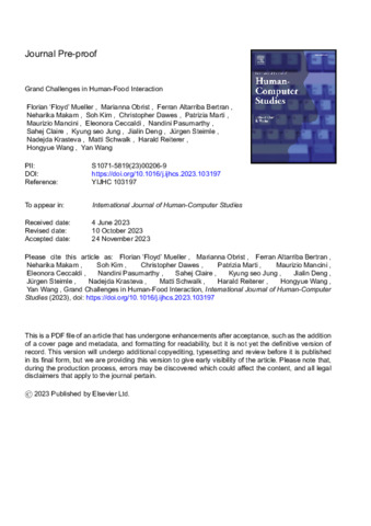 | Keywords: | Human-food interaction, Eating, Grand challenges, Interactive technology |