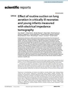 Title: | Effect of routine suction on lung aeration in critically ill neonates and young infants measured with electrical impedance tomography |