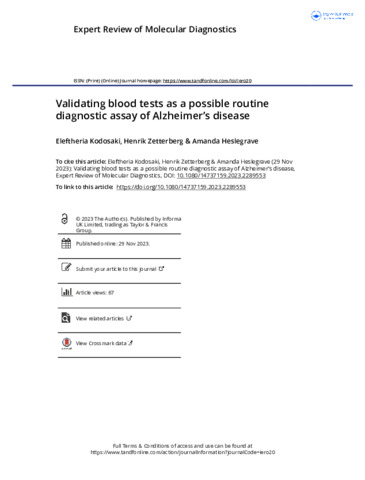 | Title: | Validating blood tests as a possible routine diagnostic assay of Alzheimer’s disease |