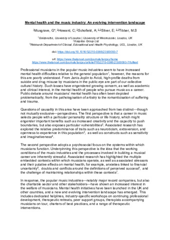 Mental health and the music industry: an evolving intervention landscape.
