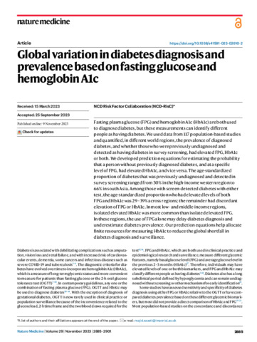 Title: | Global variation in diabetes diagnosis and prevalence based on fasting glucose and hemoglobin A1c |