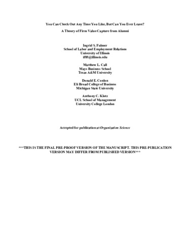 Title: | You Can Check Out Any Time You Like, But Can You Ever Leave? A Theory of Firm Value Capture from Alumni |