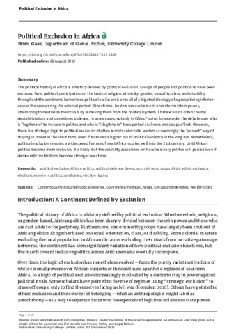 Political Exclusion in Africa.pdf - Published Version Download (1MB) | Preview |