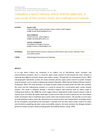 | Title: | Towards a multi‐modal space syntax analysis. A case study of the London street and underground network |