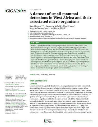 Title: | A dataset of small-mammal detections in West Africa and their associated micro-organisms |