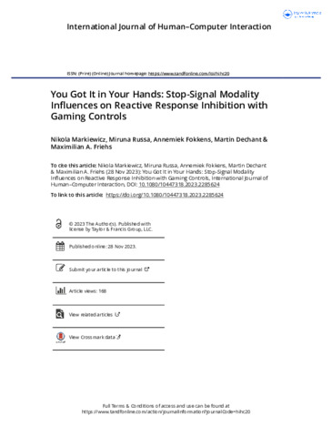 Keywords: | Inhibition; stop-signal task; gamification; haptic feedback; signal perception |