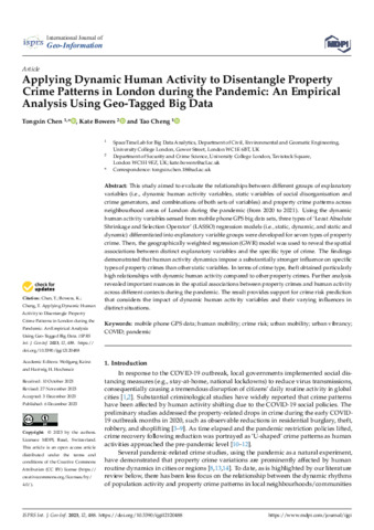 Applying Dynamic Human Activity to Disentangle Property Crime Patterns in London during the Pandemic: An Empirical Analysis Using Geo-Tagged Big Data.