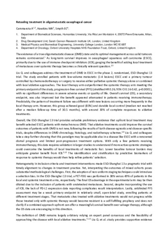 | Title: | Retooling treatment in oligometastatic oesophageal cancer |