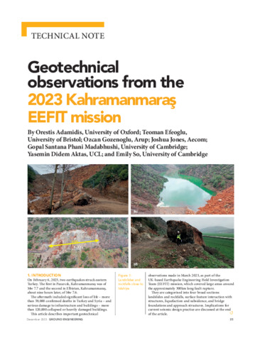 | Title: | Geotechnical Observations from the Kahramanmaraş EEFIT Mission |