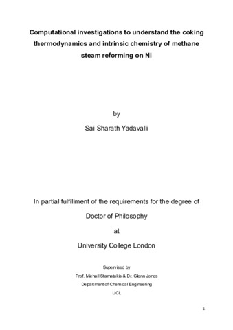 Title: | Computational investigations to understand the coking thermodynamics and intrinsic chemistry of methane steam reforming on Ni |