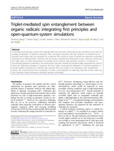 Title: | Triplet-mediated spin entanglement between organic radicals: integrating first principles and open-quantum-system simulations |