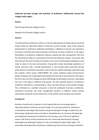 Title: | Holocene sea-level change and evolution of prehistoric settlements around the Yangtze Delta region |
